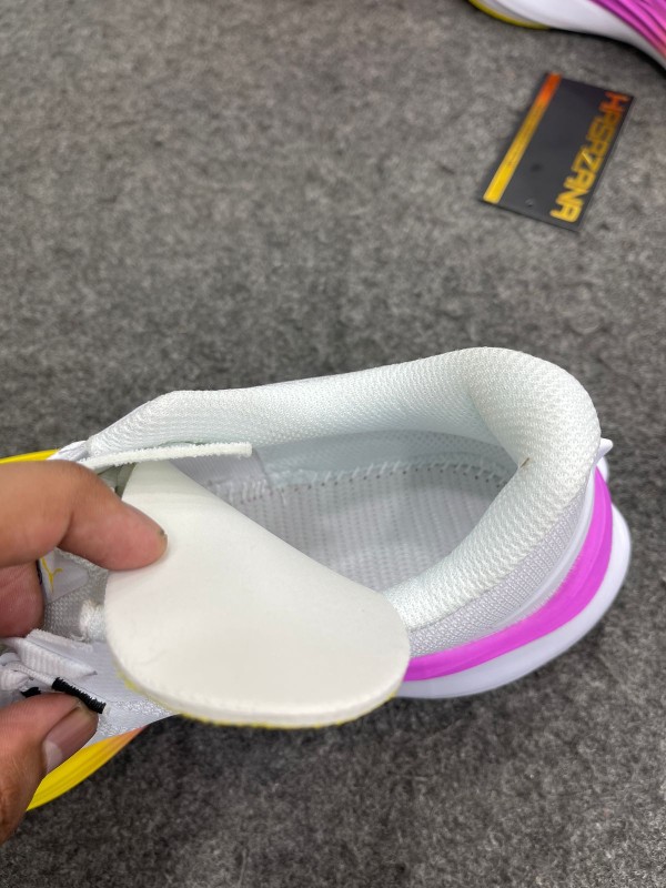 The upper features a lightweight, breathable engineered mesh in crisp White, accented by Pure Magenta and Neon Yellow highlights for standout style. A full-length NITRO™ Elite foam midsole provides ultra-responsive cushioning with incredible energy return, while the carbon composite PWRPLATE ensures powerful propulsion and a snappy toe-off.