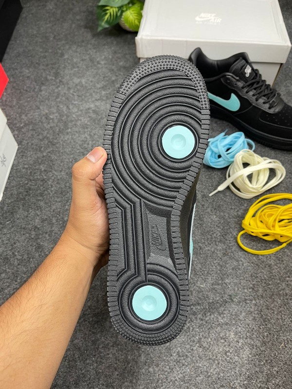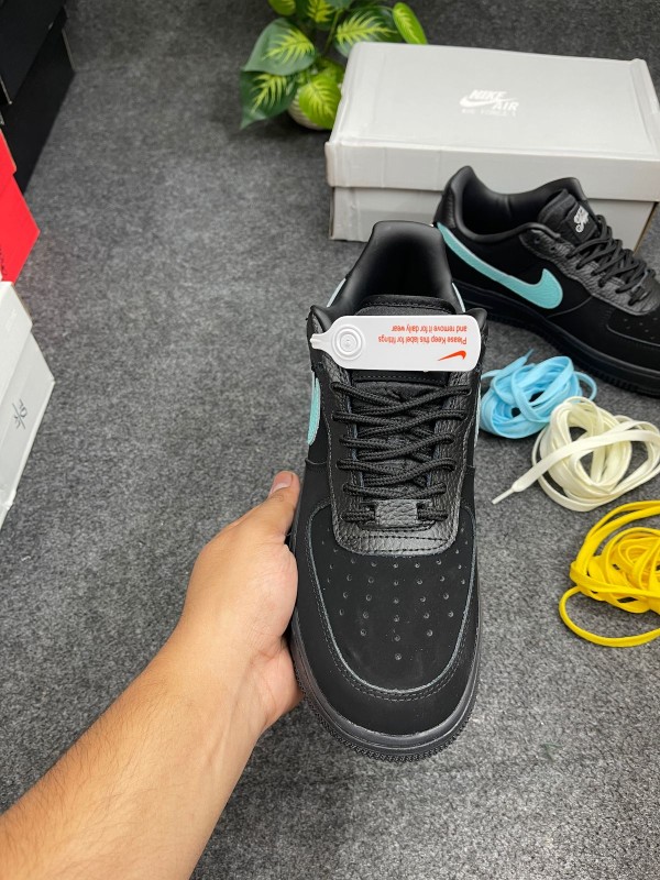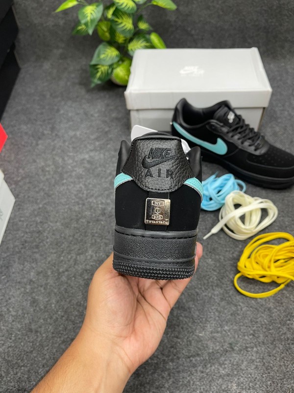 Subtle co-branded details elevate the sneaker: a sterling silver “Tiffany” plaque on the heel tab, engraved tongue tags, and custom insoles highlight the collaborative craftsmanship. The classic Air Force 1 midsole and rubber outsole ensure everyday comfort with timeless style.