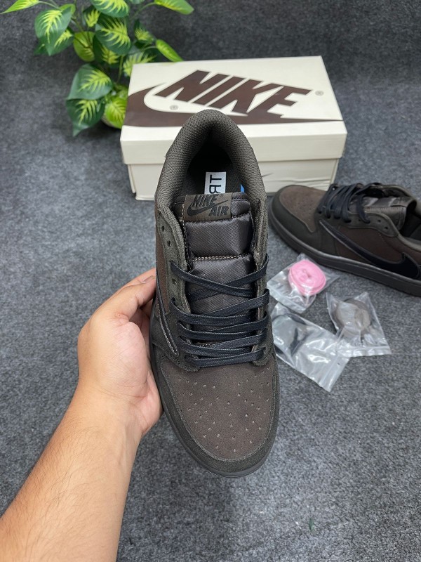 The sneaker rides atop a Sail midsole and dark brown rubber outsole, ensuring both comfort and a vintage aesthetic. With its earthy palette and premium construction, the Travis Scott 'Velvet Brown' AJ1 Low is both wearable and collectible—ideal for fans of streetwear, hip-hop culture, and rare sneakers.
